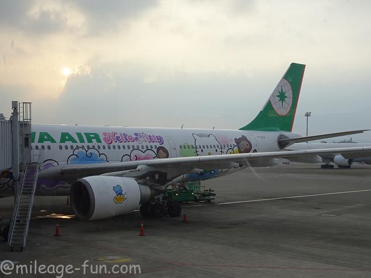 台北発関空行きのエバー航空便に乗ったらキティちゃんが迎えてくれて非常に驚きました。