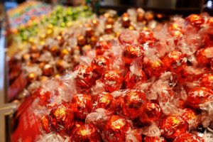 店内にはリッターチョコがたくさん売ってます。割引の効いたお得なパックもありました。