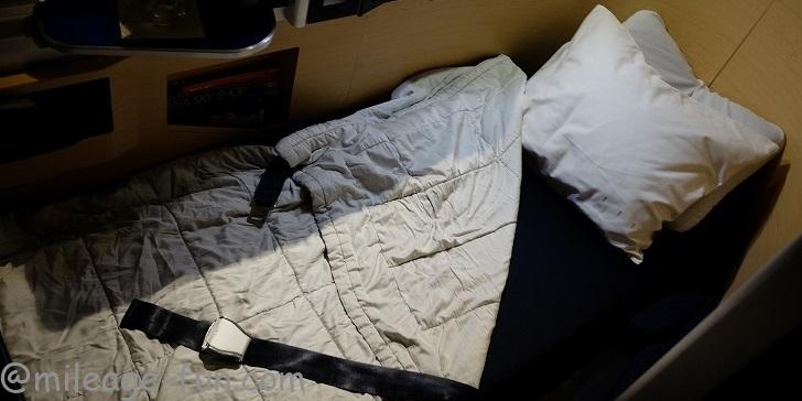 「就寝の際は声をかけて下さい。」とCAさんに言われてましたので声をかけてみました。すると「ベッドメイクをしますね。」とのことで、セッティングをしてくださりました。セッティング前の席の写真です。
