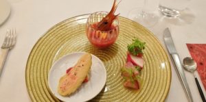 上記の4皿全てメニューからお好きなものをチョイスします。まずは前菜からです。色々迷うのですが、最後はいつもスペシャリテのフォアグラマンゴーを選んでしまいます。
