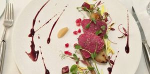 鴨胸肉のレアを添えて 山形県産栃の木の花の蜂蜜のサルサ