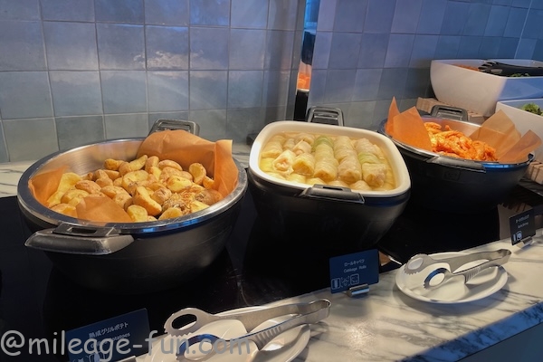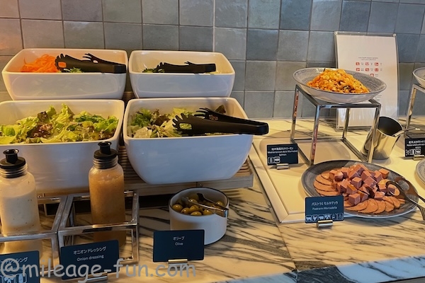 カクテルタイムに利用してみました。夕食に利用できそうなぐらい食事が用意されています。軽く頂くことにします。