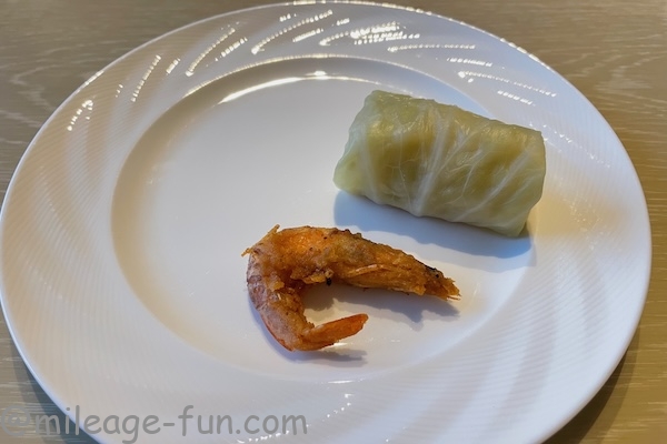 ガーリックシュリンプとロールキャベツ。この日はリゾレッタのイラリアンを予約していましたので、少しだけいただきました。