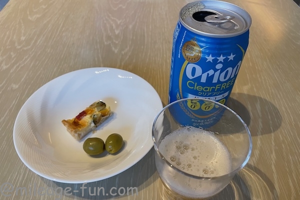 おつまみと昨日も頂いたノンアルコールのオリオンビール。美味しかったのでリピートしました。