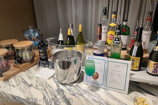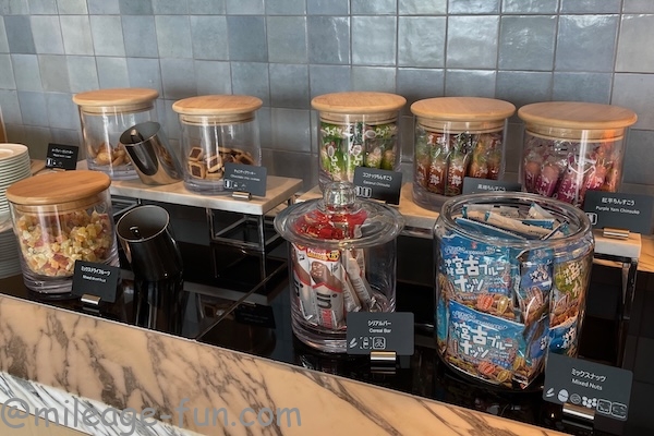 快適なラウンジでした。ちょっとした食べ物もあり、ドリンクも豊富で満足です。筆者はリゾレッタや茶寮を利用する前の空き時間に利用させていただきました。