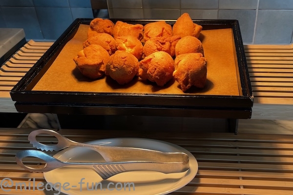 サーターアンダギーがあり、嬉しかったです。こちらはホクホクでサクサクしていて美味しかったです。朝食バイキングで既にお腹いっぱいになっていて、さらにこの後、茶寮でパフェを食べるので1つが限界でした。できれば2つ食べたかったです。