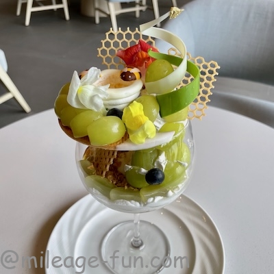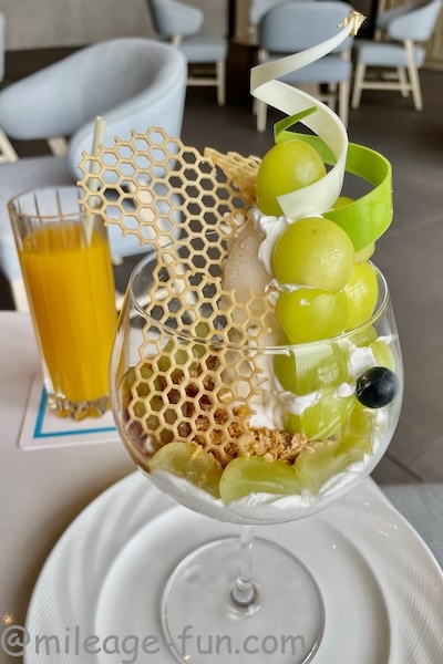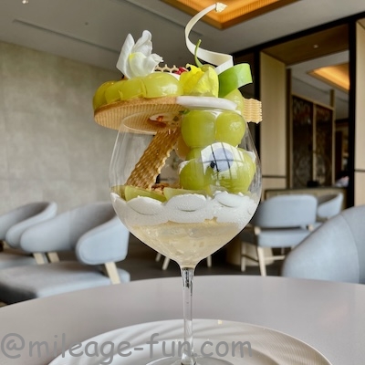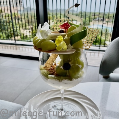 ヒルトン沖縄宮古島リゾートではパフェを楽しめます。時期によりマンゴーだったりメロンだったり様々です。筆者が訪れた2025年11月はシャインマスカットでした。