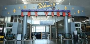 空港到着です。飛行機から降りると、どーんとラスベガスの感じが出ていてテンションがあがります!
