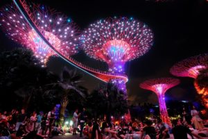 人口植物のスーパーツリー・グローブが音楽に合わせて色が変わる様子は幻想的で美しいです。