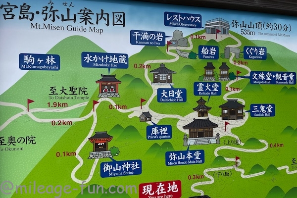 弥山本堂→三鬼堂→文殊堂・観音堂→くぐり岩→弥山山頂というコースで目指しました。
