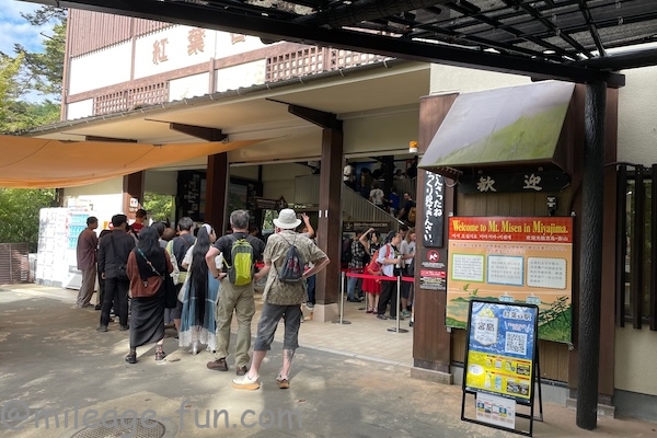 厳島神社から入り口まで往復20分、ロープウエーの待ち時間が80分、乗車時間が往復10分、登山が往復1時間、合計で3時間ほどでした。