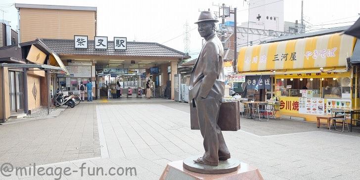 柴又駅を出るとすぐに寅さんの銅像が迎えてくれます。皆さん、寅さん像の前で記念撮影をしていました。
